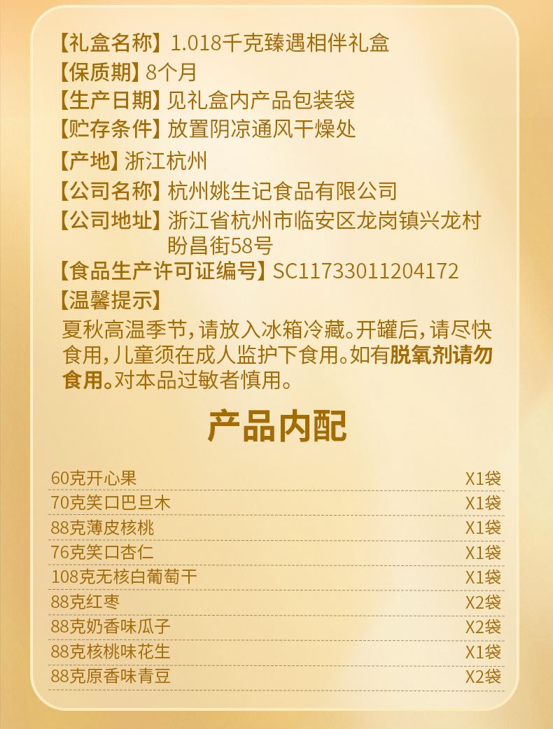 姚生記臻遇相伴堅果禮盒1.018千克 姚生記臻遇相伴堅果禮盒1.018千克