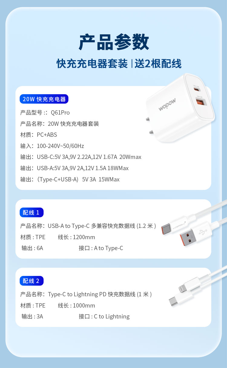 20W快充充電器套裝Q61PRO 20W快充充電器套裝Q61PRO