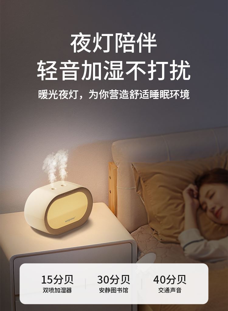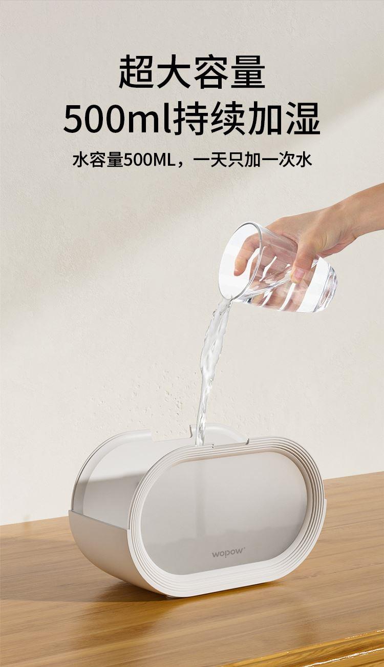 容量:500ML 產品尺寸:165*72*104.5mm 包裝尺寸:168*110*75mm 產品重量:330g 噴霧時間:5-10小時 雙噴霧連續噴霧5小時自動關機,雙噴霧間歇噴霧/單噴霧連續噴霧10小時自動關機 噴霧量:約40ML/H 輸入TYPE-C,5V1A 顏色:白 材質:ABS+PP 暖白氛圍燈光,雙噴頭 靜音加濕,納米細霧 輕音運行,一鍵操作 TYPE-C輸入,大容量 三檔加濕,四季通用